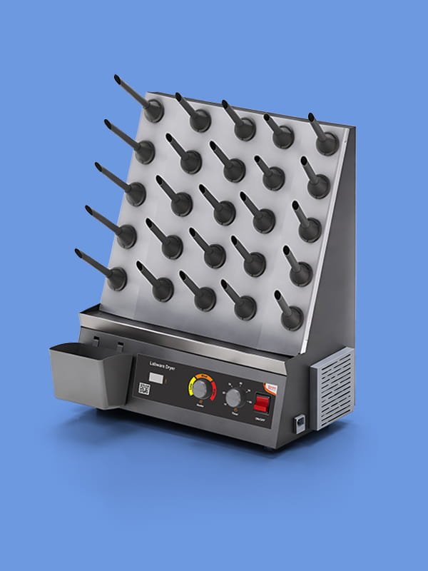 The Glassware Dryer is designed for efficient drying of laboratory glassware. It offers adjustable heating levels and a timer function to ensure safe and controlled operation.