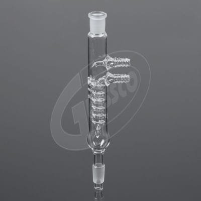 - Coil style reflux condenser with tightly wrapped coil providing maximum cooling