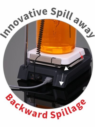 - The wide space between the hot plate and the control system helps to save the controls from liquid damage.