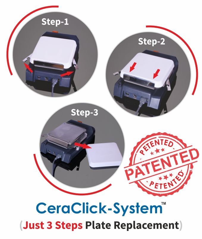 Cera-Click System is a new method of laying ceramic plate without gluing them to the surface. With Cera-Click System, one can easily replace the broken or damaged Glass Ceramic Plate. Other advantage of Glass Ceramic Top are :